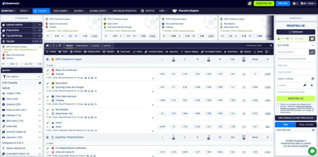 Za igrače koji traže platformu za Fairpari kazino Bosna tržište, dostupna je široka ponuda sportova, veliki broj događaja dnevno i konkurentne kvote. Uz to, kazino dio nudi hiljade igara i prilično juicy kazino bonus dobrodošlice za nove igrače.